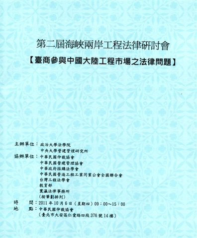 2011年10月6日上午9時,第二屆海峽兩岸工程法律研討會假中華民國仲裁協會舉行,主題為「台商參與中國大陸工程市場之法律問題」。