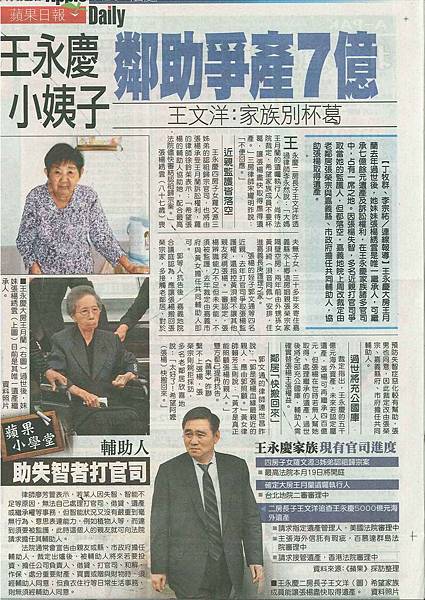 張楊綉雲案,嘉義地院合議庭裁定張榮宗及嘉義縣市政府為輔助人 取得連結 Facebook X Pinterest 以電子郵件傳送 其他應用程式 11月 08, 2013 2013年11月7日蘋果日報A20版載台灣嘉義地院合議庭日前裁定,將第一審裁定廢棄,將「張榮宗及嘉義縣市政府」列為張楊綉雲之輔助人! 王月蘭女士已往生,其遺產由張楊綉雲(繼承人)及王文洋(受遺贈人)共同繼承! 取得連結 Facebook X Pinterest 以電子郵件傳送 其他應用程式
